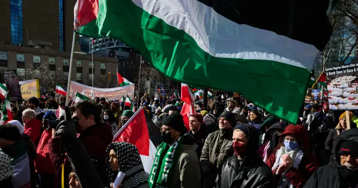 Organizers described the demonstration as an annual protest showing support for Palestinians. Social media posts promoting the rally also said the event included calls for “no war in Iran and Lebanon.”