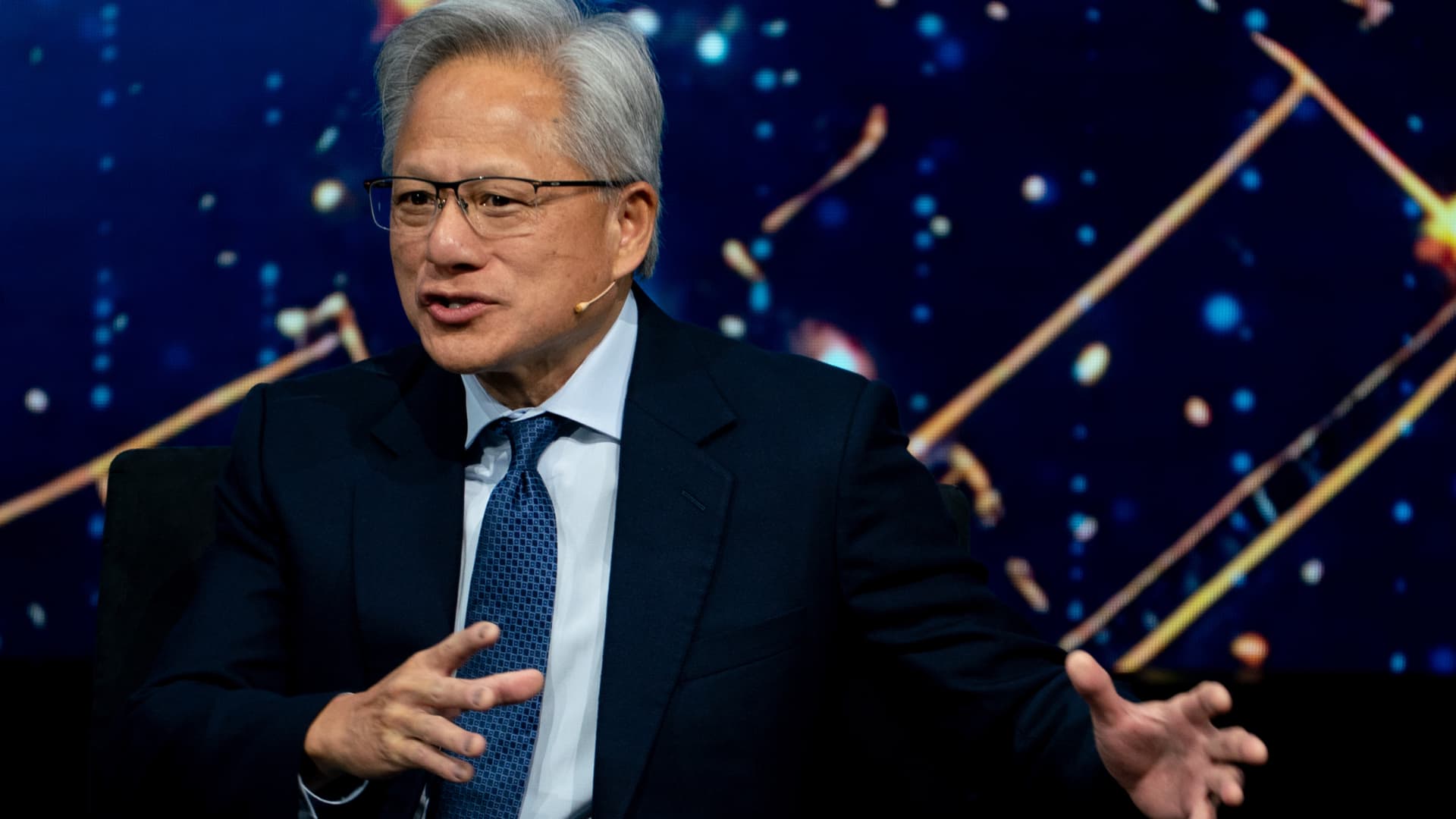 Jensen Huang, chief executive officer of Nvidia Corp., during the US-Saudi Investment Forum at the Kennedy Center in Washington, DC, US, on Wednesday, Nov. 19, 2025.