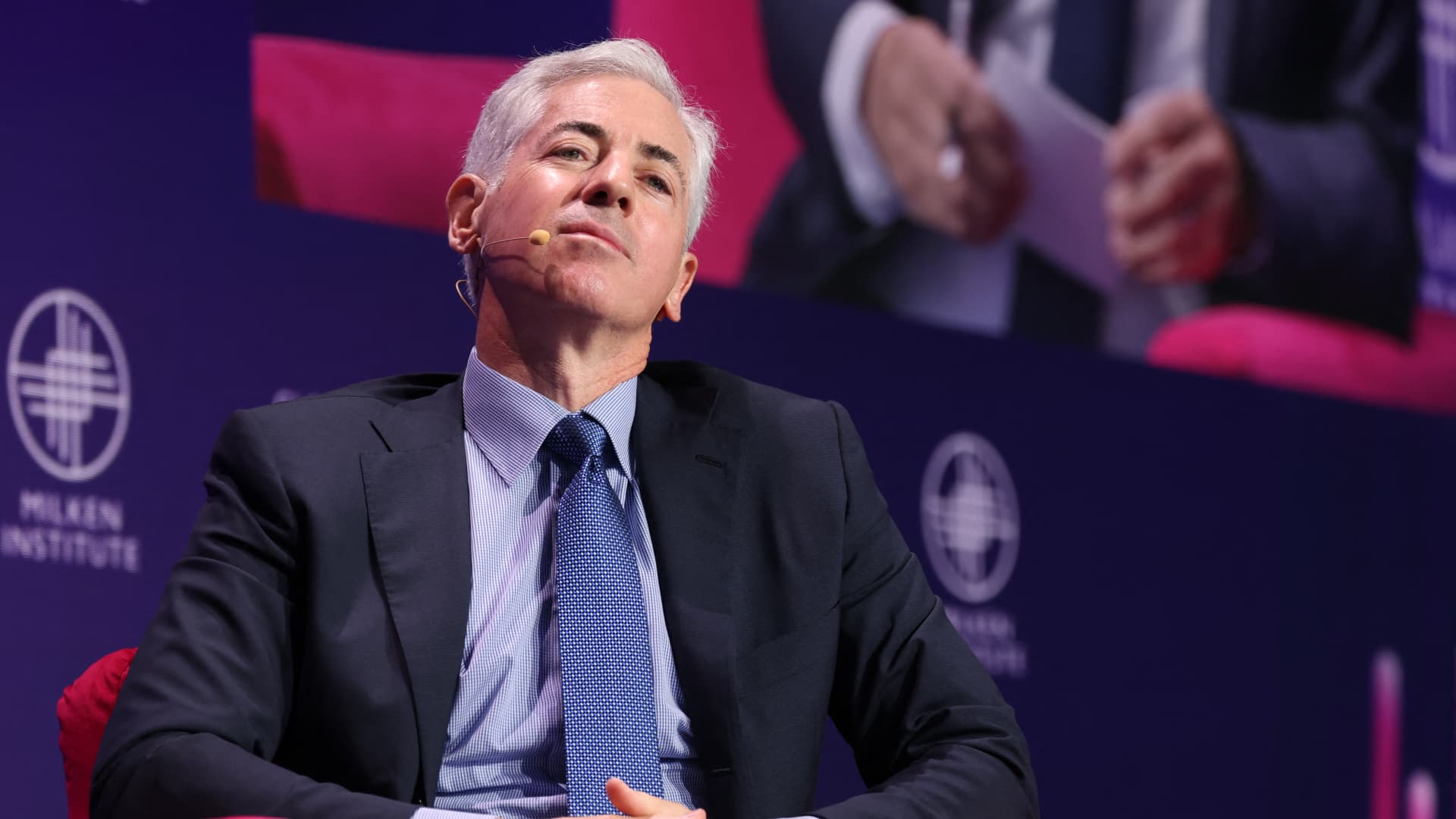 Bill Ackman, Founder and CEO, Pershing Square Capital Management speaks about higher education and Harvard University during at the 28th annual Milken Institute Global Conference at the Beverly Hilton in Beverly Hills, California on May 6, 2025.