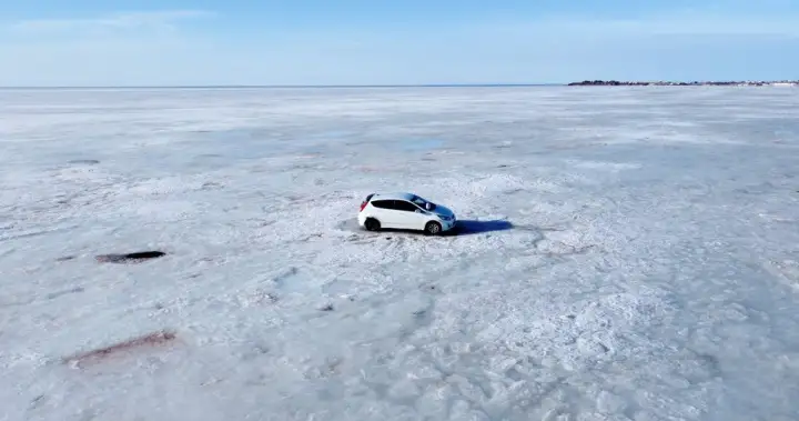 Terry Heighton, chief of the Pictou County town’s fire department, says the car was left out on the ice on March 5, presumably because it got stuck.