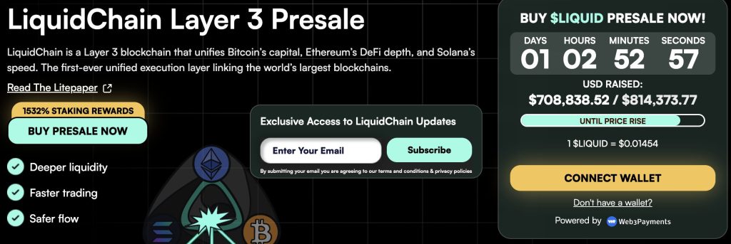 LiquidChain is aiming at that space, focusing on cross-chain liquidity by connecting Bitcoin, Ethereum, and Solana into a single execution layer. The idea is to remove fragmentation so assets and users can interact across ecosystems more efficiently.