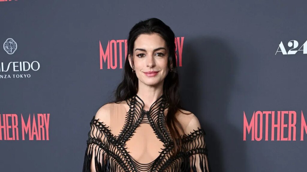 Hathaway’s intense look added to the range of fashion she’s shown during the press tour for “Mother Mary.” At the New York City premiere on April 13, Hathaway embraced a futuristic, sculptural aesthetic on the red carpet, turning heads in a sheer gown that played with light and movement.