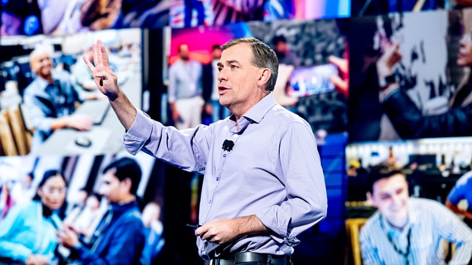 Amazon Web Services CEO Matt Garman delivers a keynote address at the AWS re:Invent conference in Las Vegas on Dec. 2, 2025.
