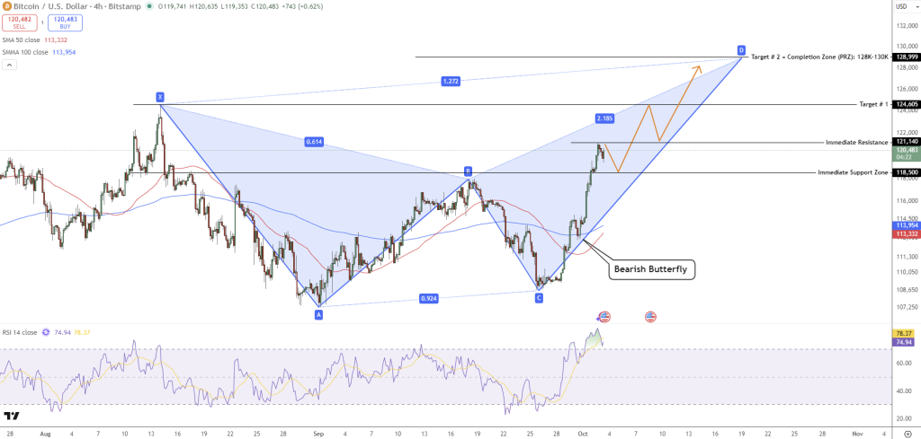 Bitcoin Price Prediction: Bearish Butterfly Forms as BTC Eyes $128K