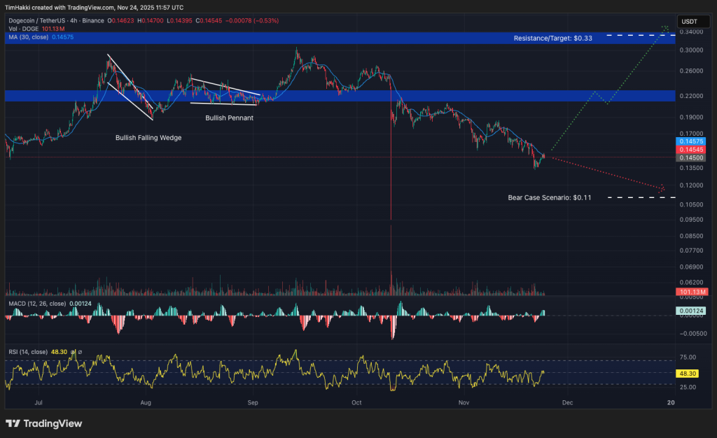 Mainstream adoption is steadily growing as well. Tesla accepts DOGE for merchandise, while PayPal and Revolut have both integrated DOGE transaction support.