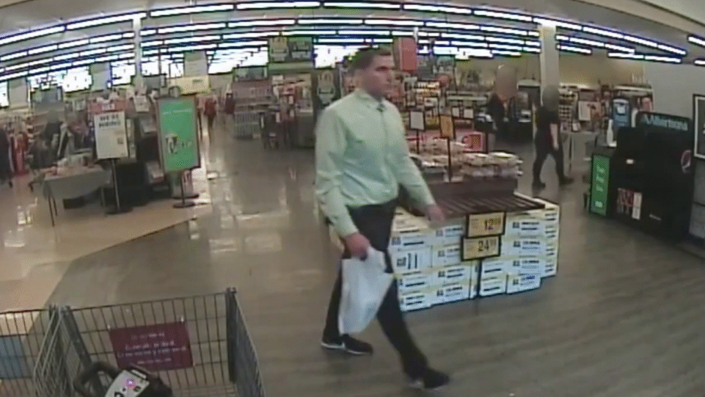 This still image taken from surveillance video of an Albertson’s supermarket in Clarkston, Washington, shows Bryan Kohberger shopping hours after the Idaho student murders. (Moscow Police Department)