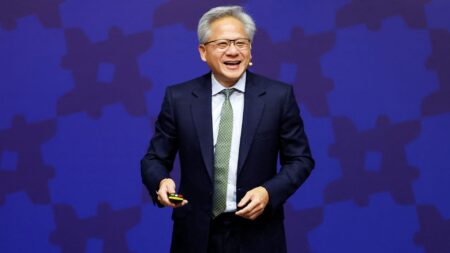 Alphabet shares are up 50% this year, after Monday’s gains, trading just shy of their all-time high reached last week. The company notched its first $100 billion revenue quarter in the third period, fueled by growth in its cloud unit, which houses its artificial intelligence services. The cloud division also has a $155 billion backlog from customers and an updated line of chips that sets it apart from other AI players.