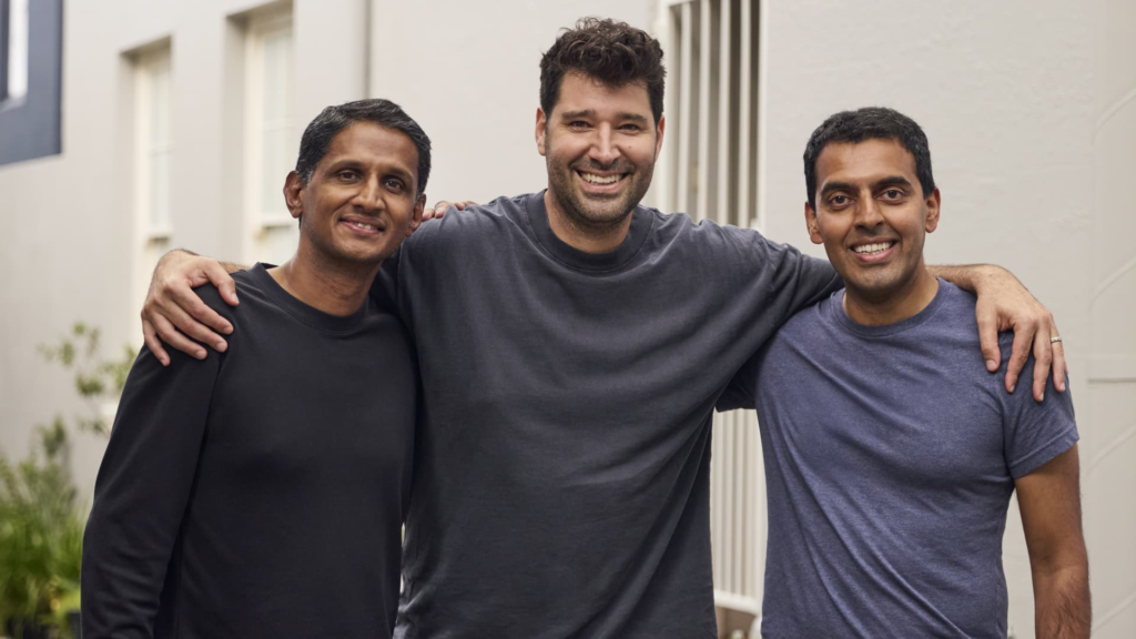 From left, MangoAI’s Nirmal Govind, Canva Co-Founder and Chief Operating Officer Cliff Obrecht and MangoAI’s Vinith Misra.
