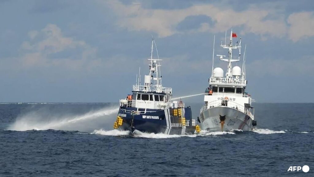 The Philippines said a Chinese coast guard ship “fired its water cannon” at the BRP Datu Pagbuaya, a vessel belonging to Manila’s fisheries bureau, at 9.15am on Sunday.