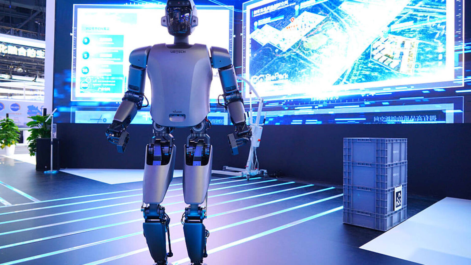 UBTech humanoid robot is on display during the 27th China Beijing International High-tech Expo at China National Convention Center on May 8, 2025 in Beijing, China.