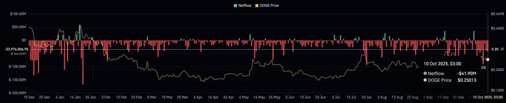 CoinGlass data shows nearly $41.90 million worth of Dogecoin leaving exchanges, hinting that big players are stacking up instead of cashing out. Moves like this typically indicate accumulation, especially when on-chain activity remains stable.