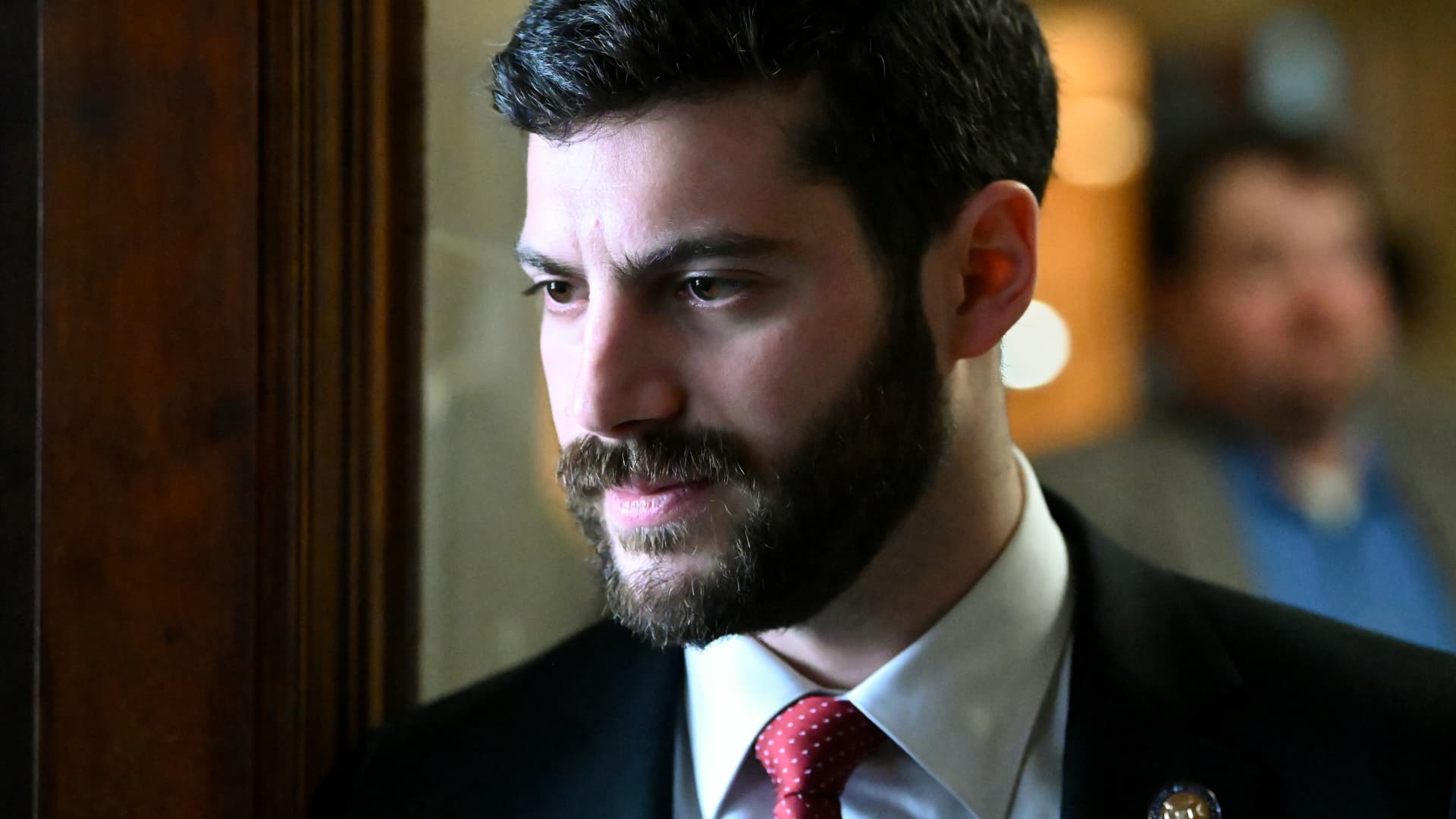 Assemblyman Alex Bores is interviewed on Monday, May 13, 2024, at the Capitol in Albany, N.Y.
