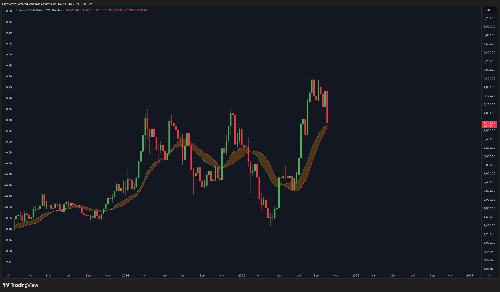 Ethereum is showing signs of stabilization after a volatile week that sent its price below $3,800. The drop came after a series of massive liquidations that swept across the crypto market in a similar fashion to Bitcoin’s retest of the $112,000 support zone. Analysts now believe that Ethereum’s correction phase could be coming to an end as momentum indicators start to turn upwards. They say that a decisive recovery in Bitcoin could give the impetus for Ethereum to reclaim the $4,500 level within weeks.