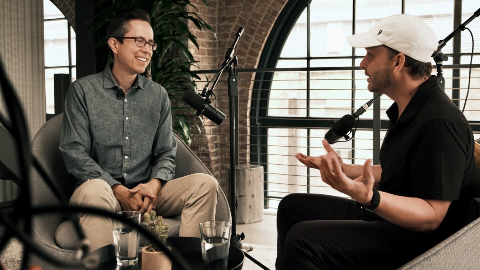 Gusto CEO Josh Reeves and Guideline CEO Kevin Busque talk at Gusto’s San Francisco headquarters.
