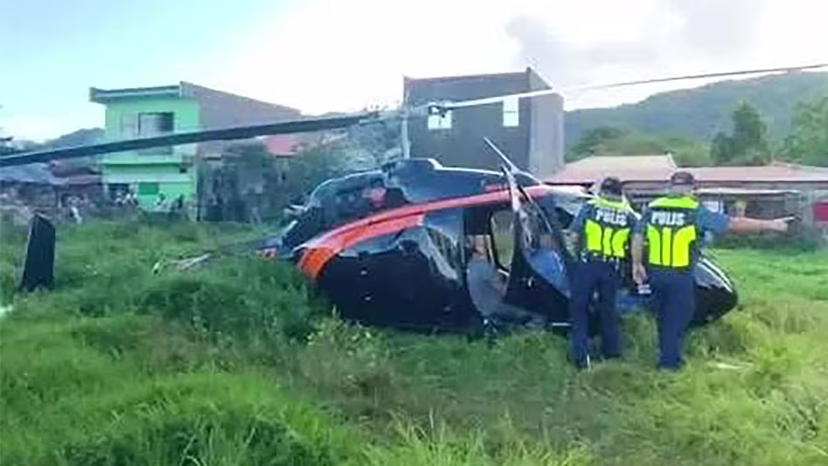 The helicopter was carrying five people, including two Malaysians, when it went down in a grassy area of a residential district in Pililla, a small town in Rizal province, at around 7.27am local time, officials said.