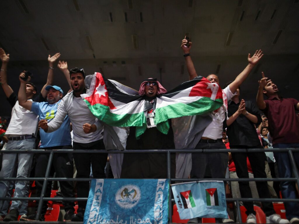 Huge celebrations erupted as fans drove their cars through Jordan’s capital Amman late on Thursday and into Friday, honking their horns and chanting victory while others waved the national flag in triumph.
