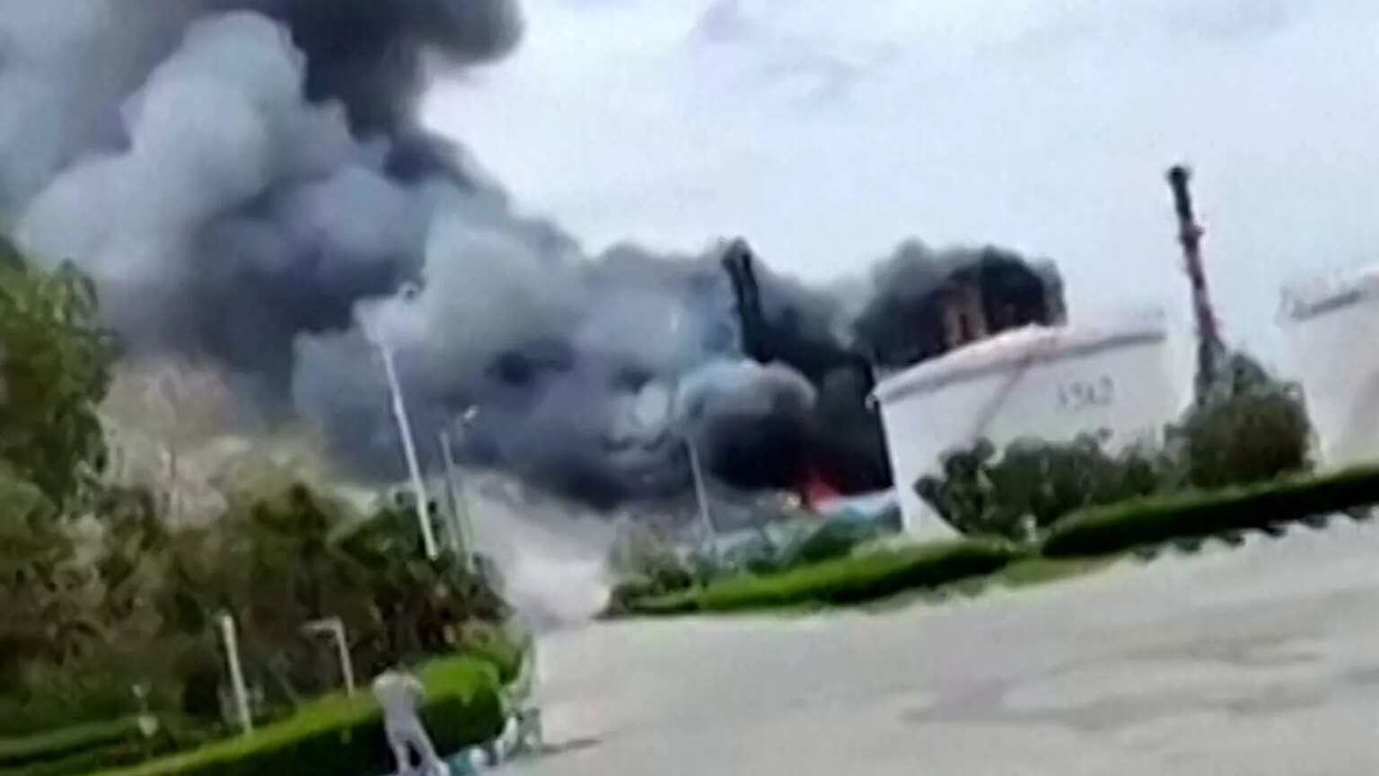 Black plumes of smoke from an oil refinery on Iran’s Lavan Island were seen, after what Iranian authorities stated was an “enemy attack” on the site. The oil refinery company stated the refinery was hit Wednesday morning. No casualties were immediately reported.