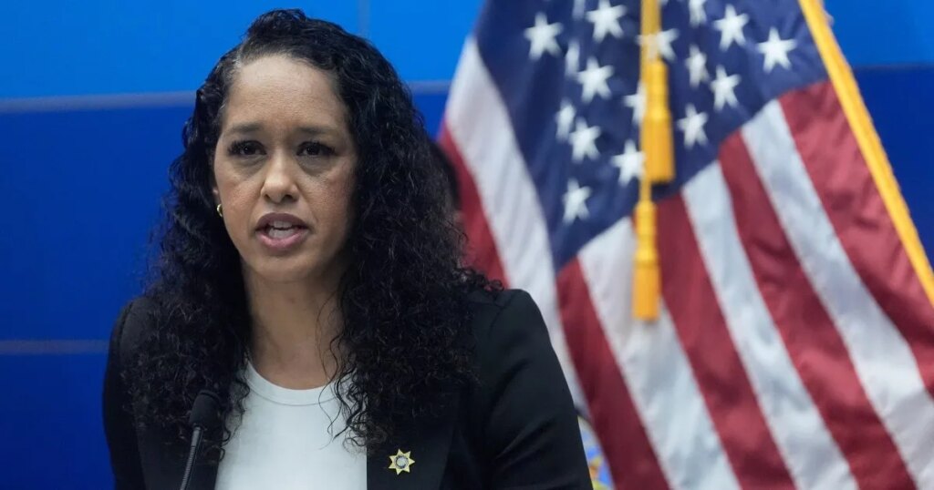 San Francisco District Attorney Brooke Jenkins speaks during a news conference on Monday in San Francisco [Jeff Chiu/AP]