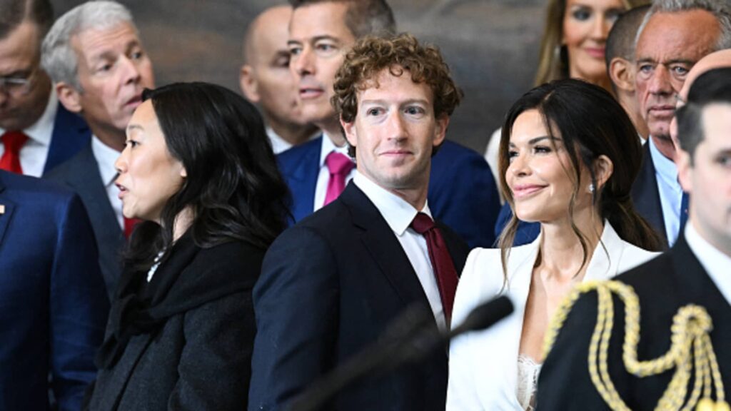 Priscilla Chan, left, Meta CEO Mark Zuckerberg, and Lauren Sanchez are among guests attending Donald Trump’s inauguration as the 47th U.S. president in the Capitol Rotunda in Washington, D.C., Jan. 20, 2025.