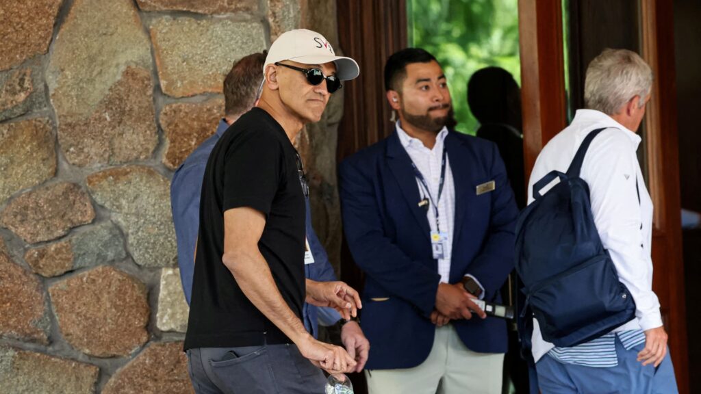 Satya Nadella, CEO of Microsoft, arrives for the annual Allen and Co. Sun Valley Media and Technology Conference at the Sun Valley Resort in Sun Valley, Idaho, July 9, 2024.