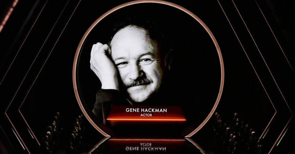 The producers of the telecast had only a few days to decide how they would honor one of the giants of acting. On Wednesday, law enforcement found Mr. Hackman’s body in the mud room of his home outside Santa Fe, next to his cane and sunglasses. Ms. Arakawa’s body was discovered in a bathroom, near an open prescription bottle and pills scattered on the countertop.