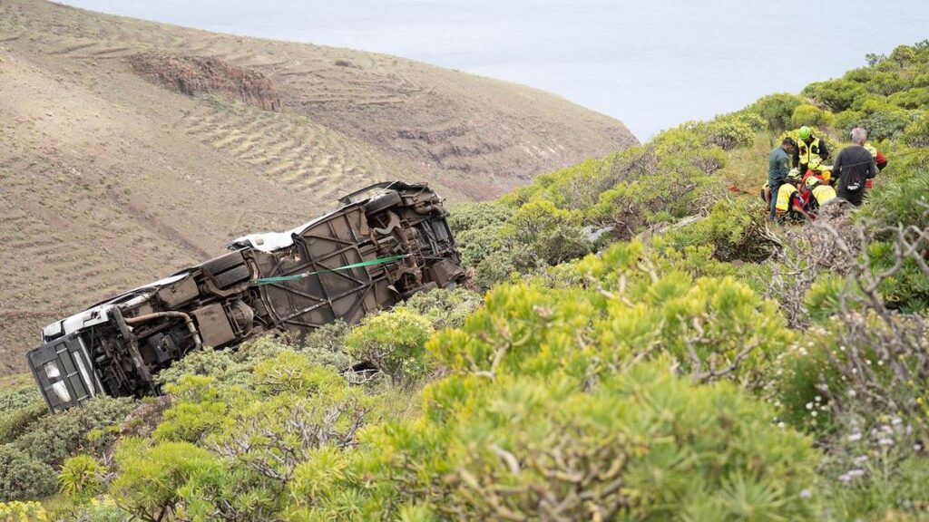 Photographs shared by the Canary Islands government on social media appear to show the bus had come off the road at a hairpin bend, coming to rest in a ravine.