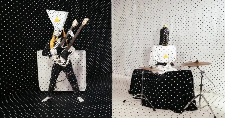 Quebec’s newest breakout band wears paper-mâché masks with giant phallic noses and polka-dot-speckled costumes that cover their entire bodies. Their music sounds like a freewheeling jam session that wandered out of a dream and crashed into a carnival ride. Their identities are a mystery.