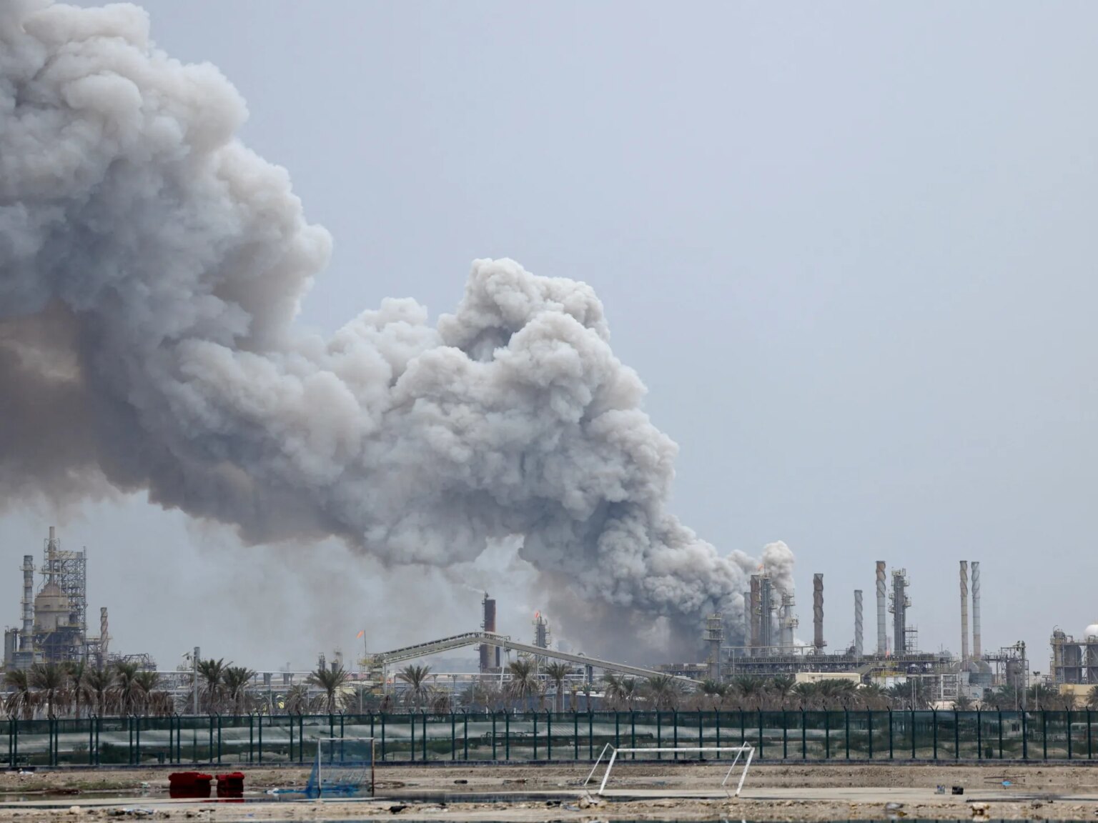 FUJAIRAH, UNITED ARAB EMIRATES - MARCH 05: Smoke rises after an explosion in the industrial zone, caused by debris after interception of a drone by air defence, according to the Fujairah media office on March 05, 2026, in Fujairah, United Arab Emirates. In recent days, Iran has fired drones and missiles toward the UAE and other Gulf states, following the joint U.S.-Israeli attack on Iran that began on February 28. Foreign ministers from the Gulf Co-operation Council (GCC) held an online meeting on March 1 and issued a statement saying they will take "all necessary measures" to defend their security and territory, condemning Iran's attacks as "heinous." (Photo by Christopher Pike/Getty Images)
