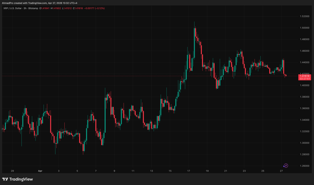 XRP is stuck in a tight range around $1.43, and that low volatility usually means a move is coming, but right now the setup leans slightly bearish.