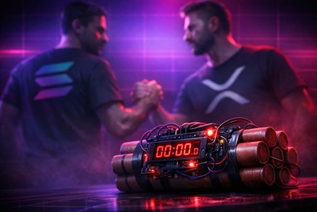 The post paired that lone word with a four-second cinematic animation of the Solana logo, no caption, no thread, no explanation. Millions of views followed within hours. The XRP community declared a “flip the switch” moment; Solana’s account fanned the flames with replies including “time to flip the switch” and “we signed 589 NDAs”. The latter a deliberate nod to one of XRP’s most enduring inside jokes.
