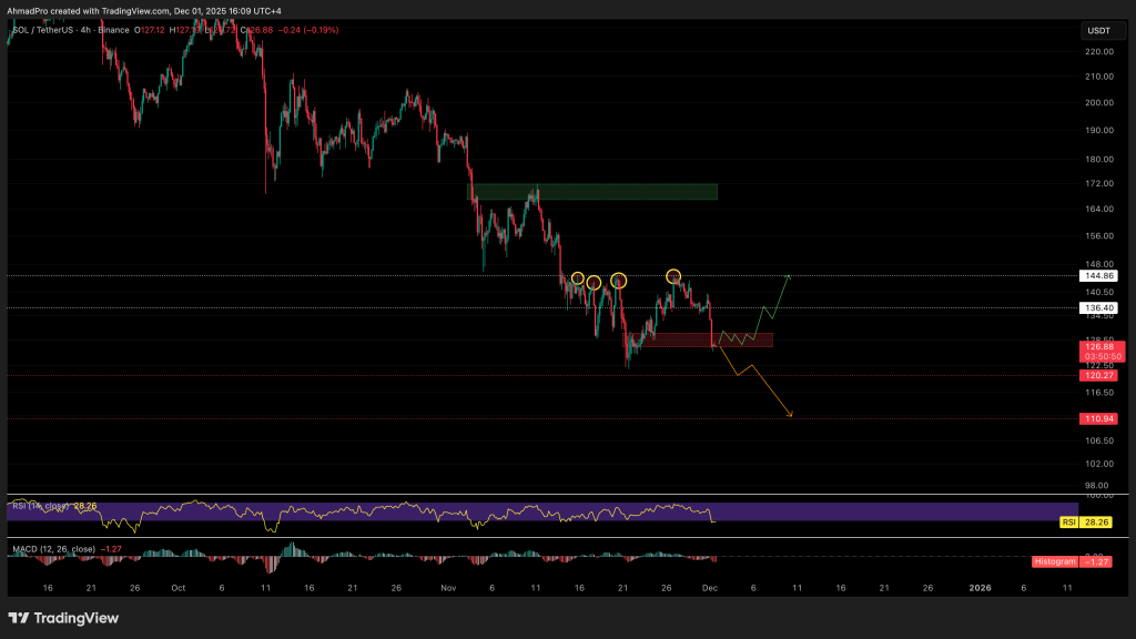 If bulls can hold this area and form another accumulation zone, SOL could bounce back toward $136 and then move to retest the $144 resistance.