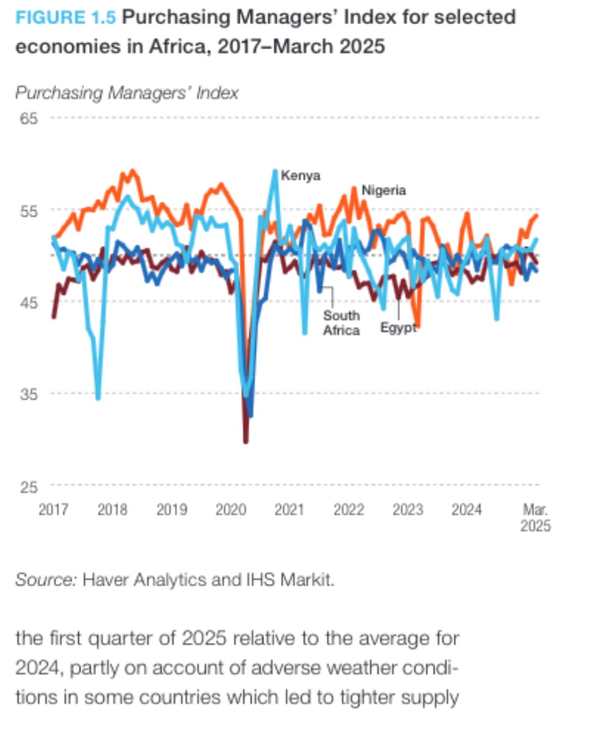 - Monetary stabilization, regional trade through AfCFTA, and renewed industrial policy are fueling structural transformation across sub-Saharan and North African economies.