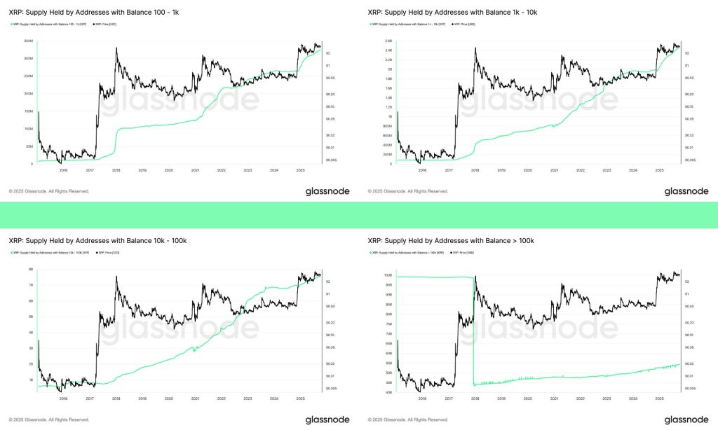 Pretty much the opposite of what small traders are doing, right? Glassnode data backs it up too, XRP supply held by wallets with over 100 tokens has been climbing steadily during this whole consolidation phase, meaning whales are quietly stacking while retail panics.