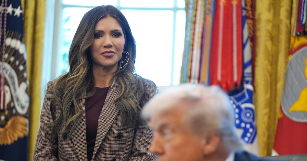 After a meeting with President Trump on Monday, Noem said on X that she had urged him to impose “a full travel ban on every damn country that’s been flooding our nation with killers, leeches, and entitlement junkies.”