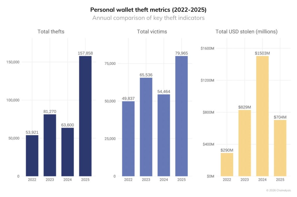 Industry data shows that the proportion of personal wallet compromises has continued to increase as the share of stolen funds.