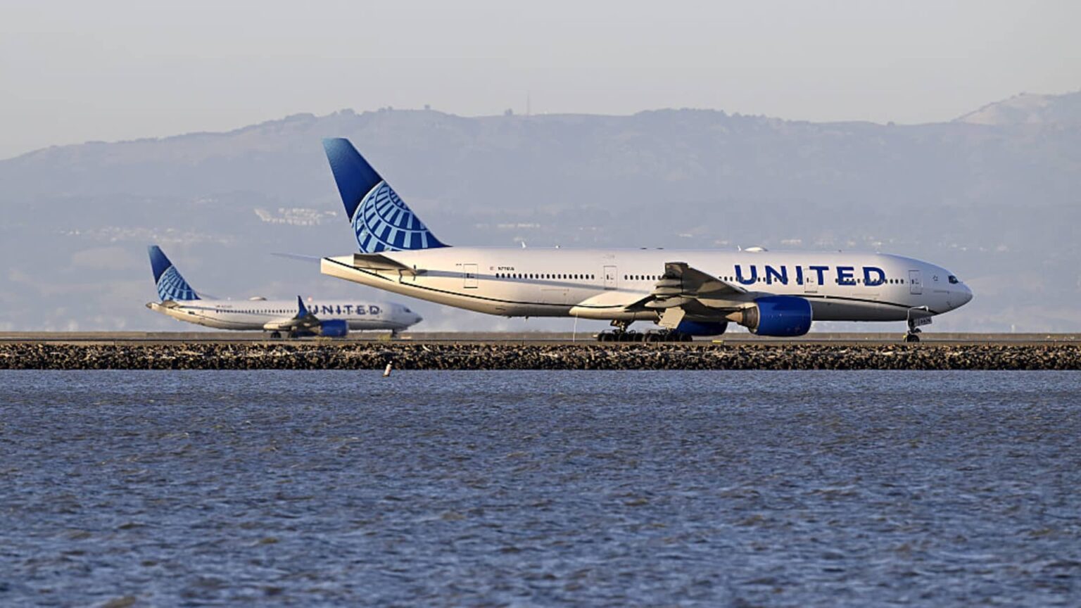 United Airlines planes are taxiing to takeoff from San Francisco International Airport.