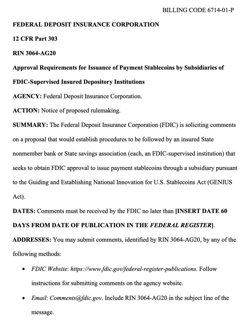 U.S. banks are moving closer to issuing dollar-backed stablecoins after the Federal Deposit Insurance Corporation (FDIC) approved a proposed rule that sets out how FDIC-supervised institutions can apply to do so under the GENIUS Act, a stablecoin law signed earlier this year.