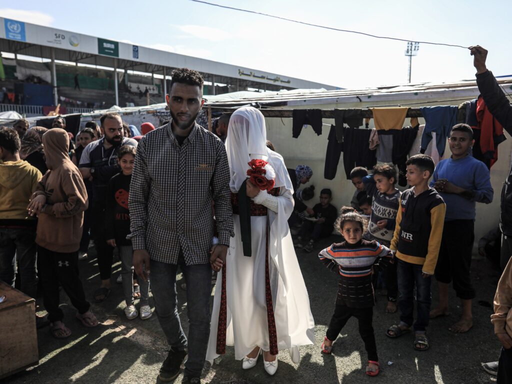 https://www.aljazeera.com/gallery/2024/2/19/we-will-celebrate-amidst-destruction-young-couple-marries-in-gaza-camp?traffic_source=rss