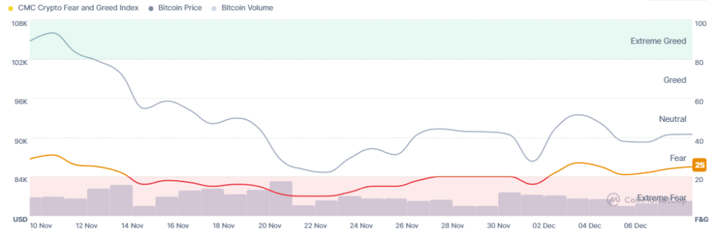 Meanwhile, the crypto market saw a minor increase on Tuesday morning, staying within the fear territory. The crypto fear and greed index rose to 25 today compared to 24 yesterday.