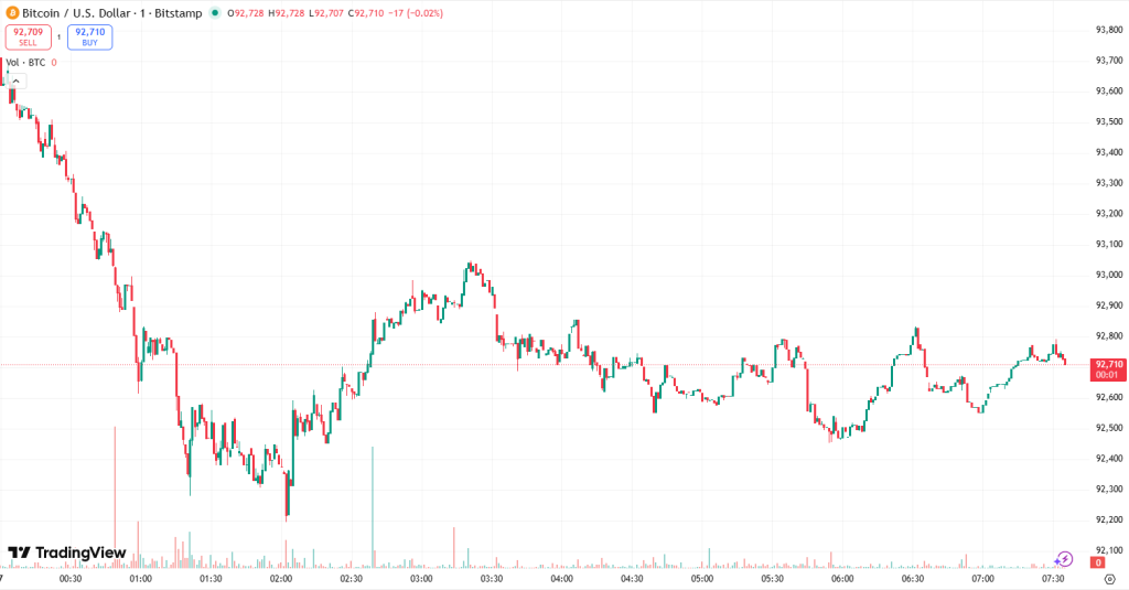 It initially plunged from the intraday high of $94,343 to the low of $91,544. It recovered to the $93,600 level before falling nearly to the intraday low again.
