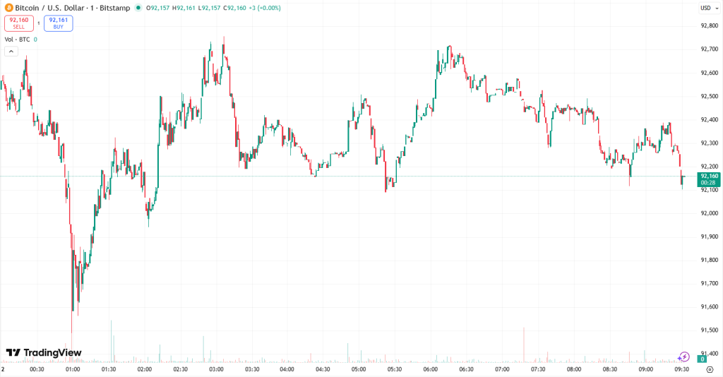 At the time of writing on Friday morning, BTC stood at $92,126. During the first part of the day, the price moved around the intraday low of $89,425. However, it then swiftly rose to the day’s high of $93,467.