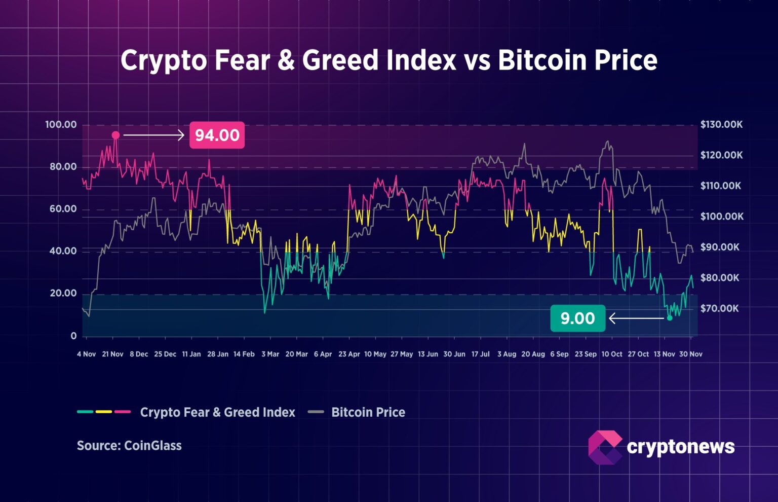 • November 2025 went down as one of the scariest months for crypto, with the Fear and Greed Index hitting 9 for the first time in history.